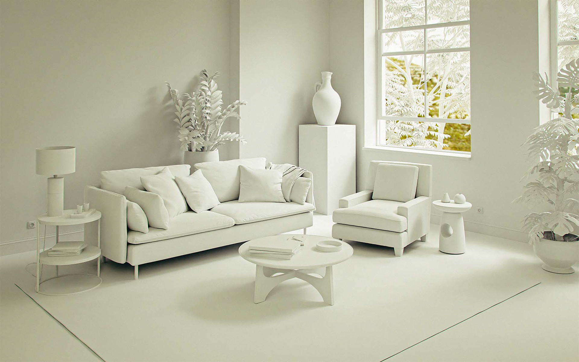 Living room to showcase furniture models.